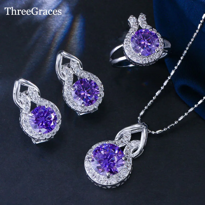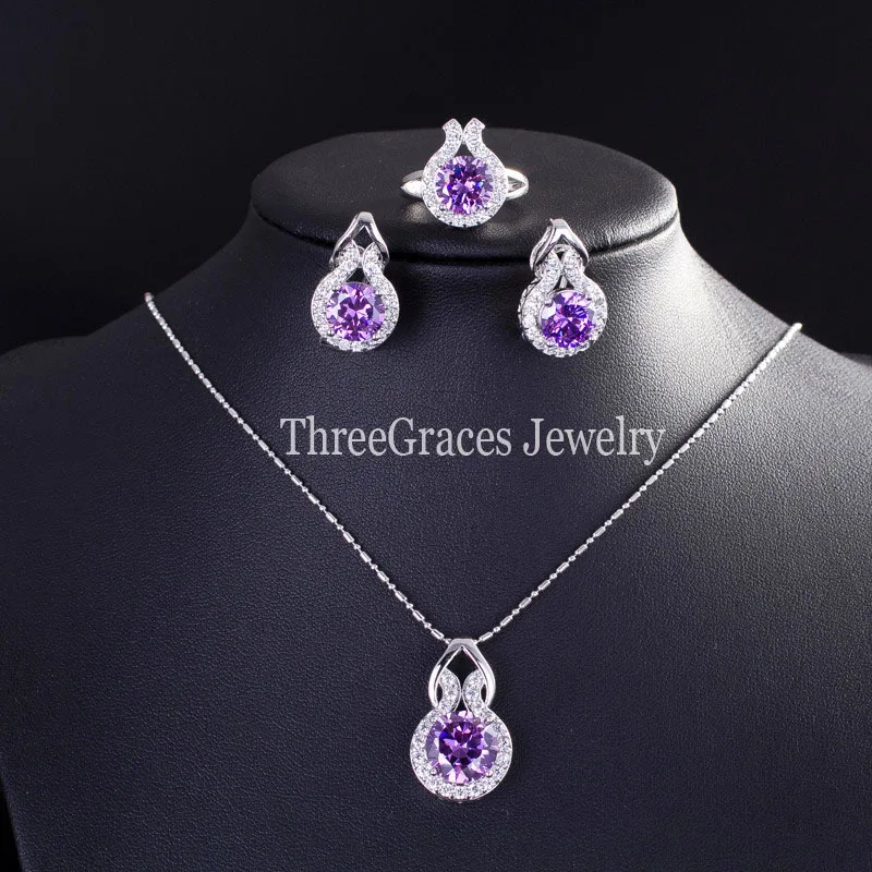 Type:Purple earrings and necklace rings set