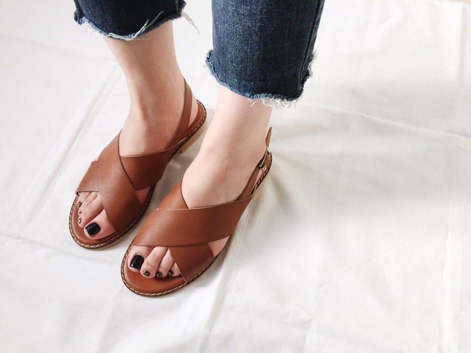 Cross-stitch Summer Beach Look Cody Sea Shoes Daily Shoes Cowhide Strap Sandals