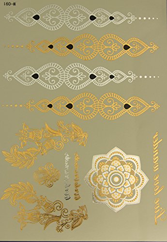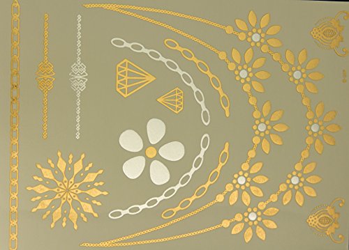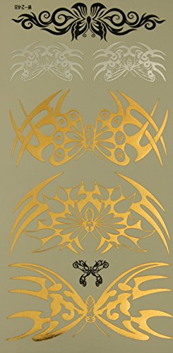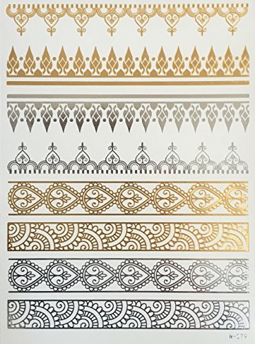 Best # 1 Premium Temporary metallic Tattoos sheets. 8 sheets of Temporary tattoos. Non-Toxic long lasting water resistant . Gold & Silver metallic...