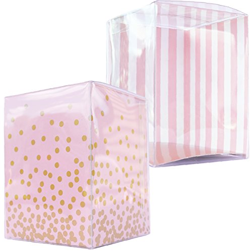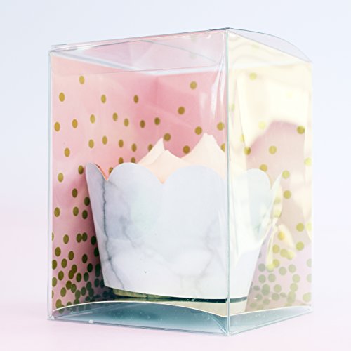 Pink and Gold Party Favors, Individual Cupcake Holders, Clear Plastic Boxes with Inserts, 3x3x4, Blush Pink Gift Box Container, Disposable, Confetti...