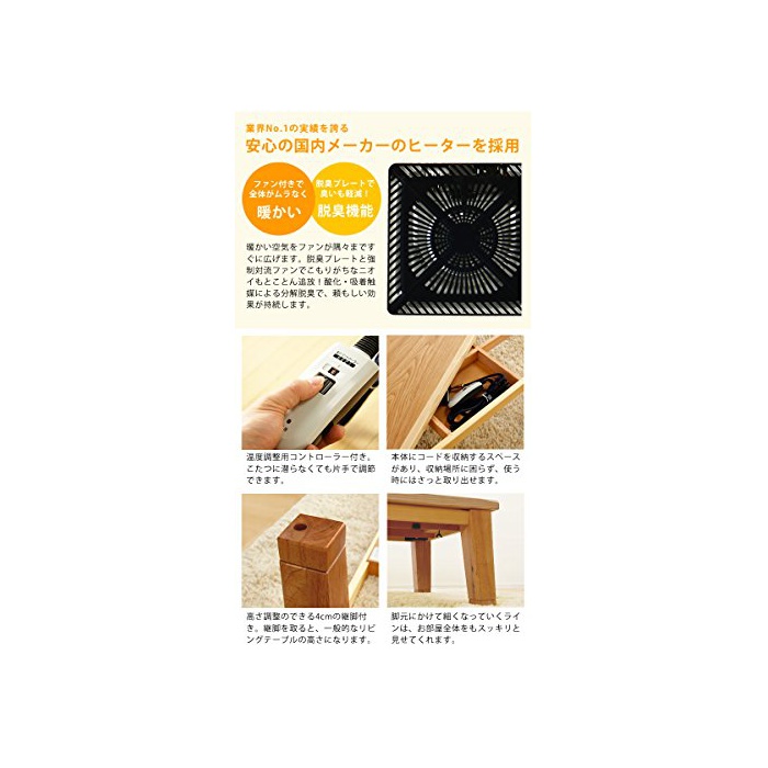사이즈:폭1200×오800×고365/계각시405(mm) 천판 두께:약38(mm) 히터 사이즈:약290×290(mm) 코드의 길이:약3200(mm)