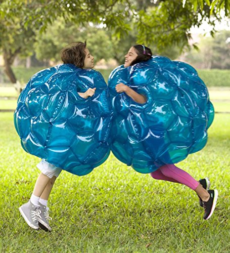 Studio : HearthSong Publisher : HearthSong Binding : Toy Product Description This set of 2 Buddy Bumper Outdoor Play Balls is perfect for family reunions, picnics, birthday parties, barbecues, at the beach--really anywhere kids and families go to have fun! Less costly and far more portable than those expensive Sumo suits, these bumper balls deflate and can be packed into a storage bag or into luggage for easy, travel-friendly play. A great active play solution, they get kids to put down the TV remote, put down the tablet, get off the couch and go outside to enjoy fresh air, exercise, and screen-free play. Simply inflate them and step inside one of the translucent blue ball and let the full-bodied fun begin. Roll them or climb inside and wear them for hours of energetic calorie burning outdoor play, kids have a blast with these blow up play balls that get them moving and laughing, bumping and bouncing. Fits kids ages 6 and up. Adult inflation and supervision required; do not over inflate. Bike/skateboard helmets are recommended for use with BBOPs as an extra safety precaution. Each ball: approximately 36' diameter; maximum weight limit 150 lbs. Each box includes 2 BBOP; complimentary patches (each patch can repair 1-3 small holes). 0