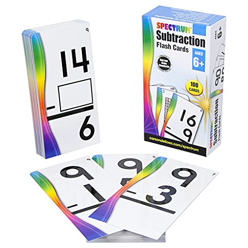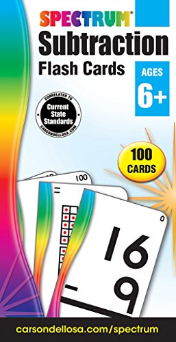 Studio : Carson-Dellosa Publisher : Carson-Dellosa Binding : Office Product Product Description Spectrum Subtraction Flash Cards help build early arithmetic skills. With fluency drills within 20 and visual models within 100, children ages 6 and up build math facts and place value strategies, laying the groundwork for more advanced concepts. Spectrum Flash Cards support the skills your child needs to know. Each 100-card set addresses essential skills for early childhood education. Letters Numbers and Colors Shapes help young learners grasp early math and reading concepts. First Words build reading readiness through word-image association, while Sight Words help students identify high-frequency words in their reading. Addition, Subtraction, Multiplication, and Division build knowledge of math facts and place value strategies, laying the groundwork for more advanced math concepts. Aligned to current state standards, Spectrum Flash Cards are a valuable and engaging supplement to the Spectrum workbook series. 0