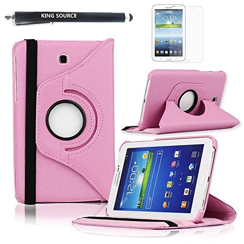 Kingsource (TM) Samsung Galaxy Tab 3 7.0 Case-360 Rotating Leather Stand Case Cover for Galaxy Tab 3 7.0 SM-T210R and SM-T217S 7-Inch P3200 Tablet Color light pink