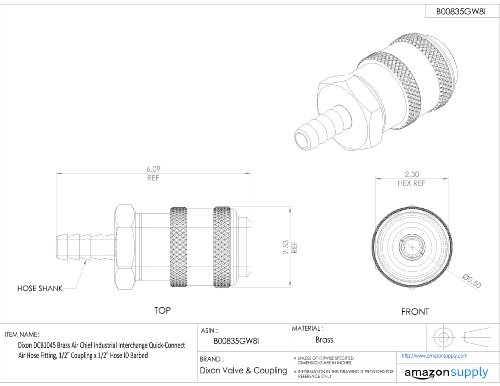 Dixon DCB1045 Brass Air Chief Industrial Interchange Quick-Connect Air Hose Fitting, 1/2" Coupling x 1/2" Hose ID Barbed