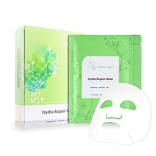-. Title : Hydra Repair Facial Mask by Aeria Skin with Hyaluronic Acid to Detoxify, Balance & Refine Pores and Blackheads, Facial Treatment for Oily, Acne-Prone, Sensitive Skin, Box of 5 Face Mask Sheets