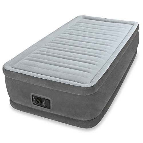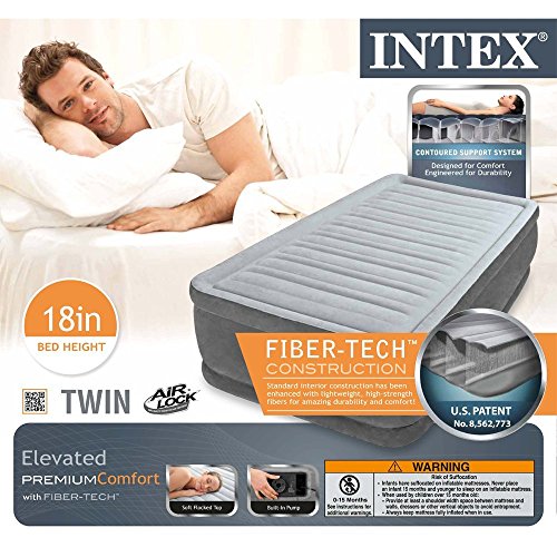 Studio : Intex Publisher : Intex Binding : Sports Product Description The Intex Comfort-Plush Elevated Airbed is engineered with the Dura-Beam Technology, which is comprised of thousands of high-strength polyester fibers, resulting in amazing durability for years of lasting comfort, the Comfort-Plush Series provides enhanced comfort, stability and support. Unlike traditional airbed construction, high-strength polyester fibers do not stretch over time. A built-in pump will inflate and deflate the airbed with the switch of a button and can be used to adjust your desired level of firmness by turning the dial. 0
