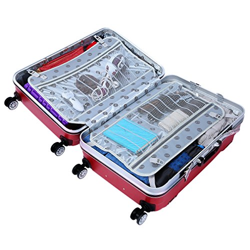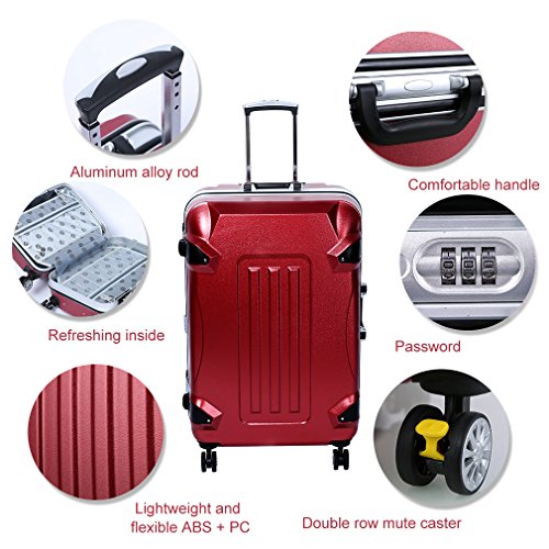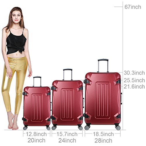 Product Description Best choice for Traveling ,perfectly fit for business or family use Transport your travel essentials effortlessly and stylishly. This extremely lightweight and durable spinner features 100 percentage ABS construction with classic molded details. A 28" spinner case can be checked at the airport, a 20" carry-on to hold the items that you need to keep close at hand. Each case is detailed with an internal chrome telescoping handle, multi-directional spinner wheels that offer excellent mobility, and grab handles for easy lifting. The interior of each case is outfitted with a zipper pocket, a mesh pocket, and an elastic pocket to hold small accessories or delicate items. SPECIFICATIONS: Dimensions Weight Volume: (handmade measurements, include wheels) Cabin luggage 20": 13.8" X 9.1" X 21.3"; 5.9 lbs; 45 liters Middle Luggage 24": 15.4" X 10.2" X 25.2"; 7.9 lbs; 75 liters Large Luggage 28": 18.5"X 13" X 31.5"; 9.9 lbs; 95 liters Instructions for Reset the combination lock ①. The lock is Pre set to 0-0-0. ②. Push the button on the broadside, while in this position set each number to your selection. ③. Release the button and your number is now set. ④.Take care when setting the numbers and do not release the button while setting it.