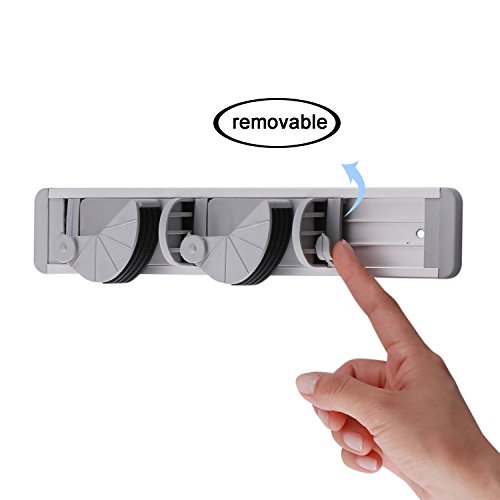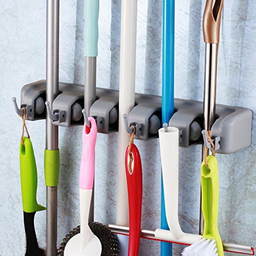 -. Title : TOGU Mop and Broom Holder Wall Mounted 3 Position Storage Rack with 4 Retractable Hooks Holds up to 7 Tools Utility Weatherproof Holder for Garage Storage Systems Broom Organizer,Gray