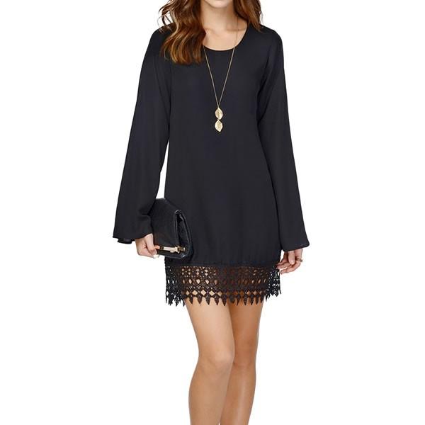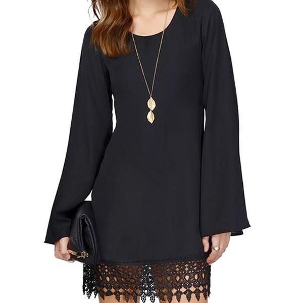 | 裾レース シフォン ワンピース ミニ丈 長袖 黒 ブラック 無地 【レース ワンピース フレアワンピース レディース 女性 ロンデルブラック ワンピース 二次会 ミニ丈 ロンデルブラック one-piece 】 | |