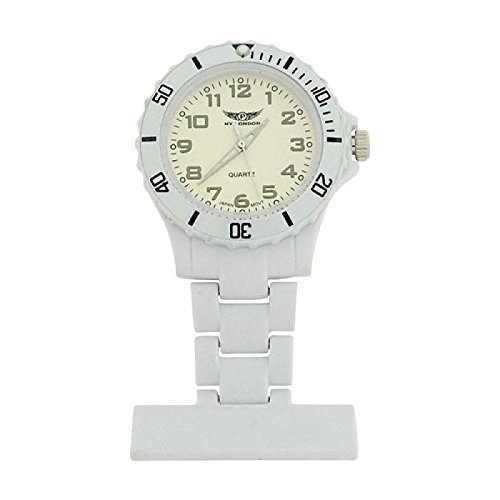 -. Title : P.R.Ince London\AN Rubberised White Rotating Bezel Unisex Nurses Fob Watch PI-2026