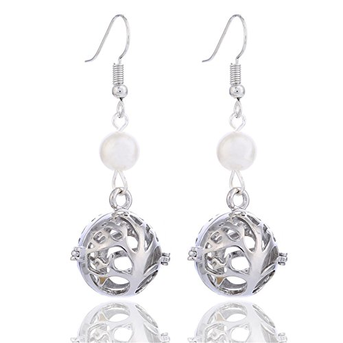 GIONO Tree of Life Pearl Openable Aromatherapy Essential Oil Diffuser Locket Lava Stone Earring Set
