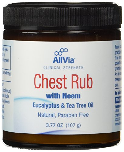 ReleaseDate : 2015-07-16 Studio : Allvia Publisher : Allvia Binding : Health and Beauty Product Description Allvia chest rub with organic neem has been respected for centuries for its comforting and cool properties when rubbed on the skin. Also considered a therapeutic rub, this product contains organic neem along with other supercritical extracts to provide a soothing aromatherapy. 0