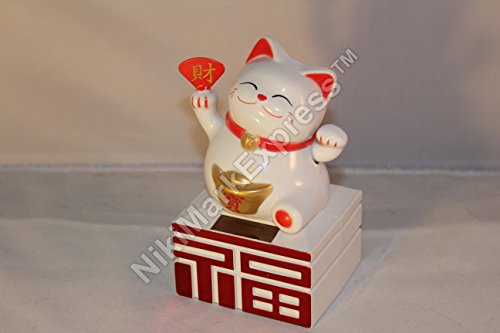 -. Title : New Solar Powered Japanese Lucky Maneki Neko Waving Paw Hand Beckon Cat White