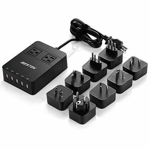 BESTEK USB Travel Power Strip with 8 International Adapters,5-Port 40W USB Charging Station with 2-Outlet Surge Protector