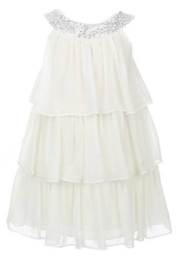New Triple Tiered Chiffon Dress with Sequined Trimmed High Circle Neckline