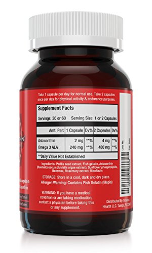 - Feature : Restores Total Body Health at the Cellular Level: Astaxanthin restores all facets of health at the cellular level. Astaxanthin is a potent free radical scavenger, singlet oxygen quencher & anti-inflammatory that is bioavailable throughout the entire body; thus preventing cellular breakdown and optimizing cellular function across all bodily systems. / Natures Most Effective Free Radical Scavenger: As a free radical scavenger Astaxanthin is shown to be 65 times more effective than vitamin C, 54 times more effective than vitamin E and 14 times more effective than Beta Carotene. Astaxanthin is also bioavailable through the entire body and is shown to reach and stabilize cells within the brain, skin, eyes, nervous system, muscles, tendons, eyes, cardiovascular system and internal organs. / 370% More Effective than Standard Astaxanthin: BioMax Astaxanthin is formulated with the ideal co-factors, Omega 3 ALA & Phospholipids, which are shown to maximize the absorption, bioaccumulation & effectiveness of Astaxanthin within the body by 370%. BioMax Astaxanthin is shown to be over 90% absorbed in comparison to standard Astaxanthin, which is only 25% absorbed. / BioMax Astaxanthin vs. Standard Astaxanthin: 1 Capsule of BioMax contains 2mg of Astaxanthin & is shown to be as effective as 7.4 mg of standard Astaxanthin. 2 Capsules of Biomax contains 4mg of Astaxanthin and is shown to be as effective as 14.8mg of standard Astaxanthin. (2003, Odeburg Study) / Omega 3 Absorption System & Phospholipid Delivery System: The Omega 3 essential fatty acids aid in dissolving the Astaxanthin within the stomach to ensure optimal absorption. And the Phospholipids, which are essential component of cells, assist in delivering the Astaxanthin to cells, membrane and tissue within the body.