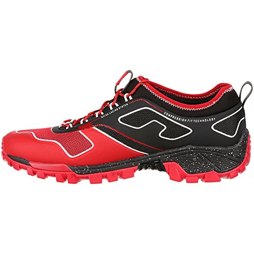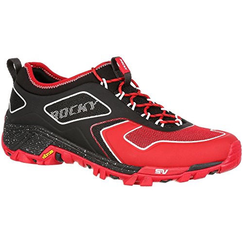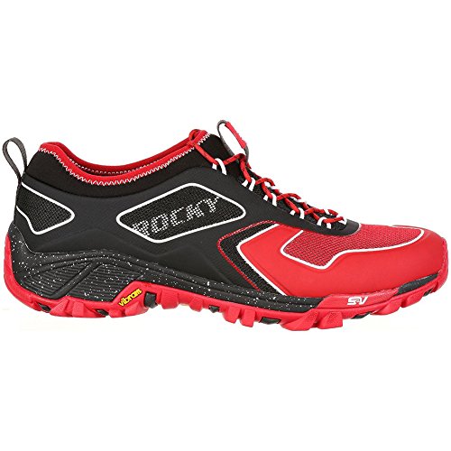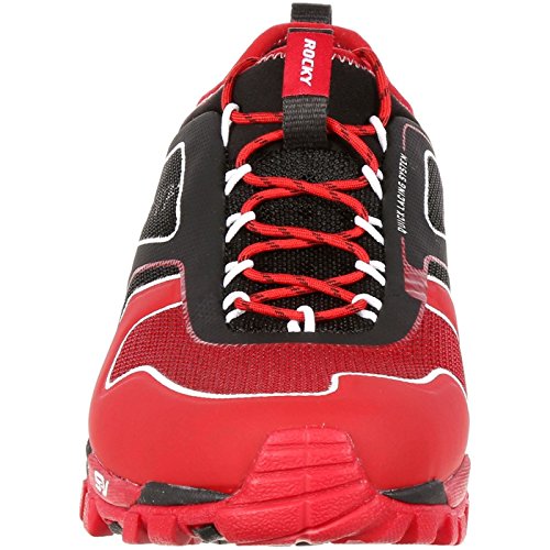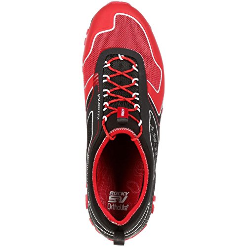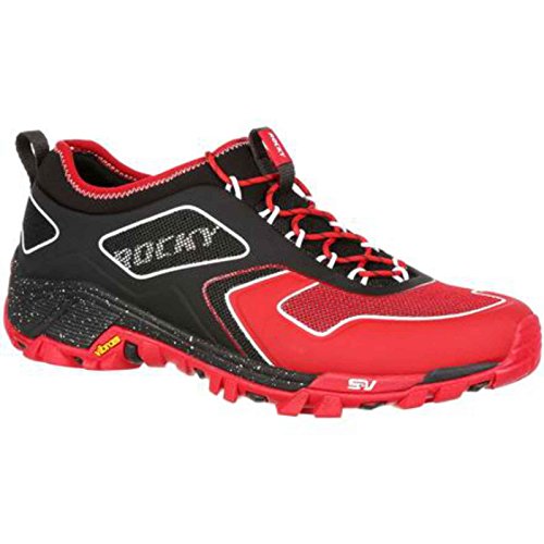 Studio : Rocky Publisher : Rocky Binding : Apparel Product Description The Rocky S2V Trail Runner is a trail shoe that goes the distance. This red and black sneaker is about comfort, stability and performance. Made from breathable mesh and Neoprene with compression fit technology, the men's shoe has a quick-lacing system and nylon pull loops at the tongue and heel.The dual-density rubber/EVA outsole of this hiking shoe has an all-terrain tread to grip uneven ground wherever your adventure takes you. The outsole has an external TPU arch support plate for protection from rough terrain. An EVA midsole gives you extra shock absorption and cushioning. To make this a really comfortable trail shoe, Rocky incorporated an Ortholite footbed for comfort with every stride.Get a men's comfortable trail shoe that's as tough as you are. Get the red and black Rocky S2V Trail Runner. 0