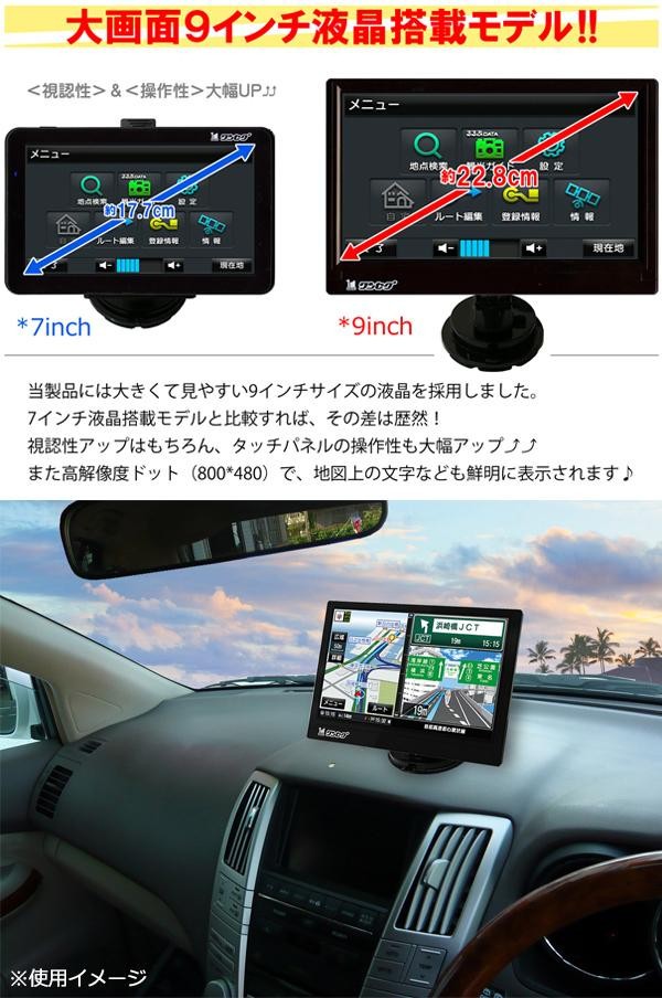 | 大画面9インチ液晶搭載のポータブルナビゲーション。 |