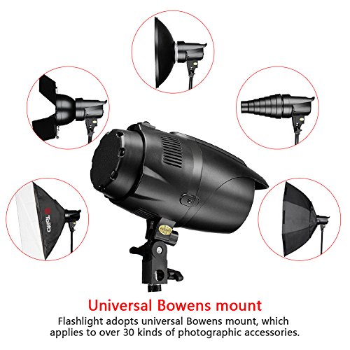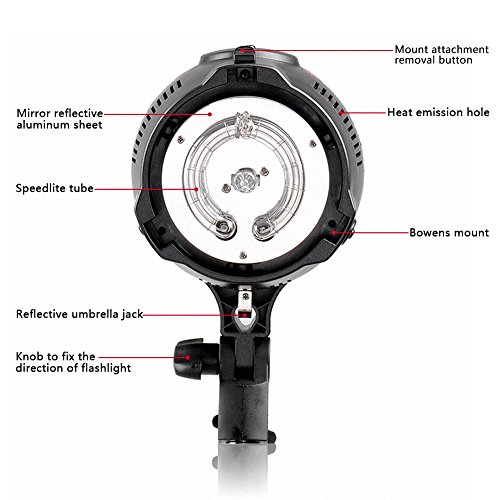 - Feature : 10MM Speedlite tube, light intensity improved by 20%. / Life extends to more than 150 thousand times. / Bowens mount design, compatible with many other accessories like softbox, barn door, snoot, beauty dish and so on. / Convex speedlite tube makes the light wider and more homogeneous / Equipped with Rubycon Capacitor, low impedance, high ripple, long life.