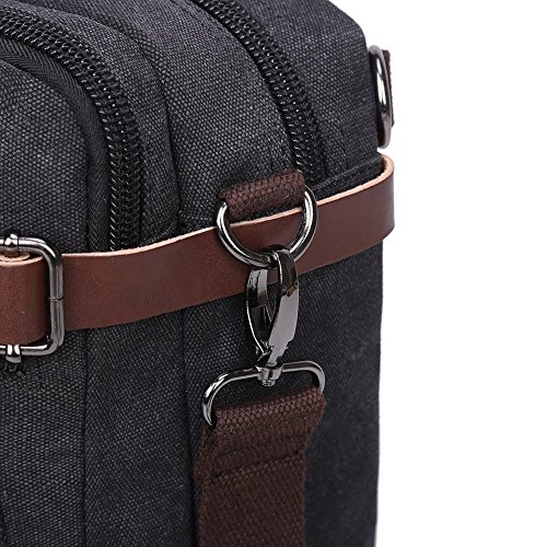 -. Feature : Dimensions: 15.2*5.1*11.2 inches (L*W*H); Weight: 1.23 KG; Roomy: 25 Liters. Made with premium quality high density durable vintage canvas fabric and leather that is very practical, lightweight and durable for everyday use. / Featured on the messenger bag is 2 MAIN pockets & 9 OUTER pockets & 3 INNER pockets. It's roomy enough for your 15" laptop, clothes, towel, shoes and your other personal belongings to meet your all needs. / Easily transforming the bag from a backpack to a messenger bag, laptop backpack and handbag. This vintage messenger bag is the ideal on-the-go companion for travel, work, school and wherever you go. / This vintage messenger bag features a classic yet stylish design, vintage hardware accents, while the adjustable broad shoulder strap makes it easy to comfortably carry around and multiple pockets to keep you organized. / It is a great messenger bag for work, traveling, school, dating, shopping and outdoor activities in daily life. It is a great gift for your friend, husband, father, son and so on. The simple, unisex style of the backpack complements both men and women.