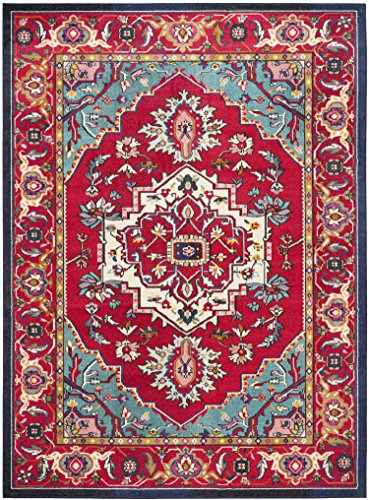 -. Binding : Kitchen -. Brand : Safavieh -. Color : Red / Turquoise -. EAN : 0683726930181 -. Feature : The plethora of colors in this rug make it an ideal piece to integrate into any home décor's color scheme / Cotton canvas backing ensures longevity and durability / Handmade from 100-percent premium, hand-spun wool / Pile Height: 0.5 inches / For over 100 years, Safavieh has been crafting rugs of the highest quality and unmatched style -. Label : Safavieh -. Manufacturer : Safavieh -. Model : MNC207C-9 -. MPN : MNC207C-9 -. NumberOfItems : 1 -. PackageQuantity : 1 -. PartNumber : MNC207C-9 -. ProductGroup : Furniture -. ProductTypeName : HOME_FURNITURE_AND_DECOR -. Publisher : Safavieh -. Size : 9' x 12' -. Studio : Safavieh -. Title : Safavieh Monaco Collection MNC207C Modern Oriental Medallion Red and Turquoise Area Rug (9' x 12') -. UPC : 683726930181