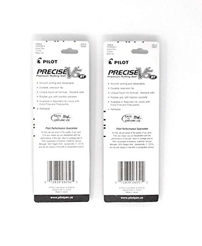 -. Binding : Office Product -. Brand : Waypros Home -. EAN : 0618119932688 -. Feature : Bundle of 2 items: 2-Pack black ink extra fine point and 2-pack blue ink extra fine point / Retractable and refillable version of the Precise V5 Pen - Pilot refill model #77273 and #77274 sold separately / Incredibly smooth, skip-free writing and rubber grip with traction pockets / Visible ink supply lets you see how much ink is left / Extra fine point (0.5mm) for precise writing -. Label : Waypros Home -. Manufacturer : Waypros Home -. MPN : 26050, 26051 -. PartNumber : 26050, 26051 -. ProductGroup : Office Product -. ProductTypeName : WRITING_INSTRUMENT -. Publisher : Waypros Home -. Studio : Waypros Home -. Title : Pilot Precise V5 Retractable Pen Rolling Ball Pens Extra Fine Point Bundle – 2-Pack Black Ink (26050) and 2-Pack Blue Ink (25051) -. UPC : 618119932688