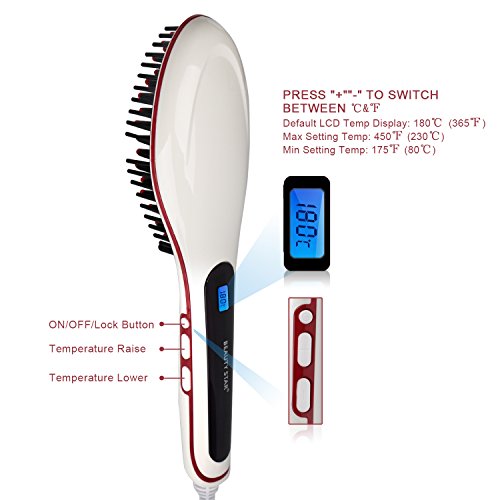 - Flexible temperatures: digital LCD display electric hot detangling Comb feature variable heat temperatures to match your specific Hair Type and with our auto-off protection, you don't have to worry about leaving it on by accident the best straightening iron dual Voltage 220V 110V for travel use