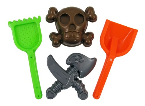 -. Feature : 7 Piece Large Pirate Ship Beach Set / Includes a pirate ship, ship sail, ship cannon, 2 shape molds, shovel and rake / Pirate ship can open up to release sand / Pirate ship measures 16" x 7" x 4" with 7" tall sail / Perfect for day at the beach!