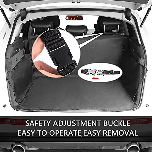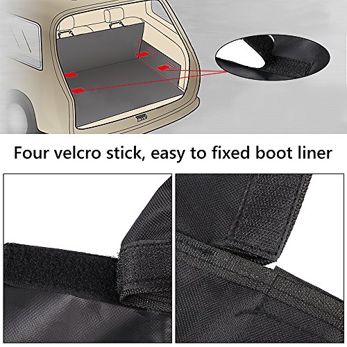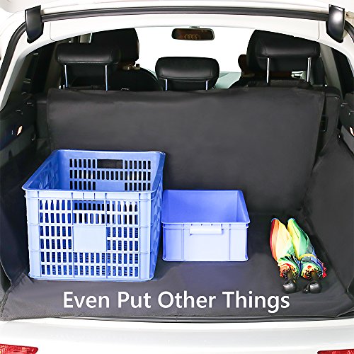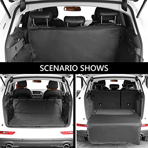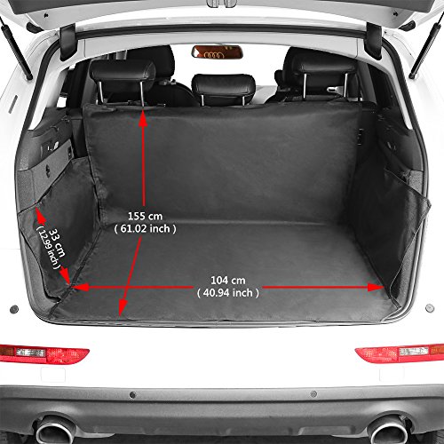-. Feature : Size: 155x104x33cm (length/width/height), provide wide area protection and enough moving space for your dogs. / Best Protector for Cars: Protects your boot liner from dirt, spills, scratches, hair & fur, and pet smells, a necessary boot for individuals with leather seats. / Waterproof & Scratch Proof: This boot is made of high quality heavy duty water resistant oxford fabric, easy to clean and wipe out with a damp cloth. Protect your seat when having fun outdoors, no need to worry the pets' scratch. / Easy to Install: Easily install with 2 adjustable headrest loops, 4 velcro closure. Seat anchor can insert to the crevice to fasten the cover, adjustable plastic clips that attach around the headrest in the front and back to fix cover firmly. / Universal: Suitable for all SUV cars, not only for small medium dogs, but also perfect for large dogs.