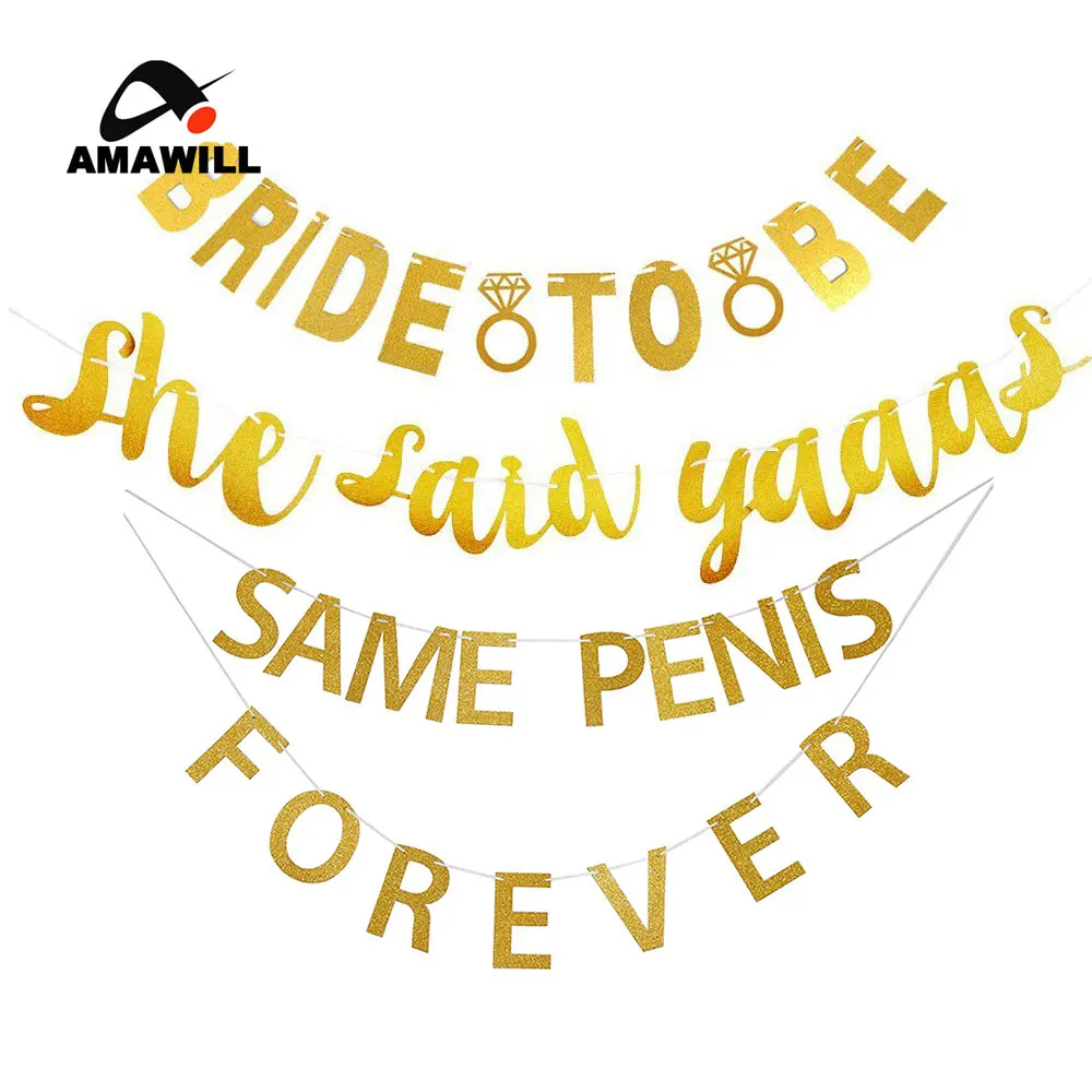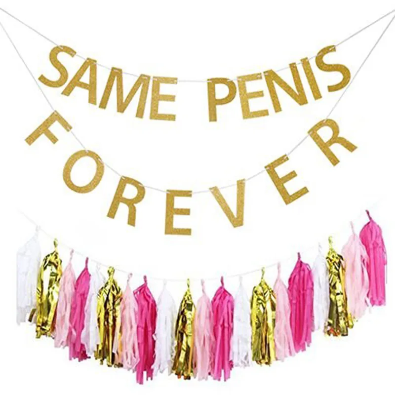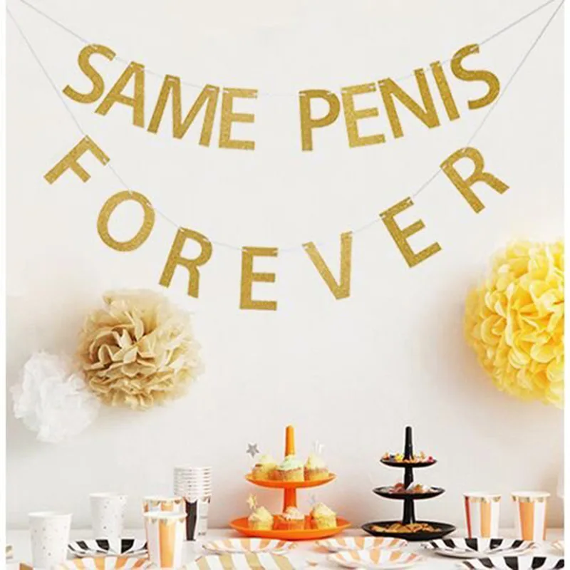Glitter Lets Party Bitches Gold Banner: Bridal Shower Same Penis Forever Hen Party Wedding Decor