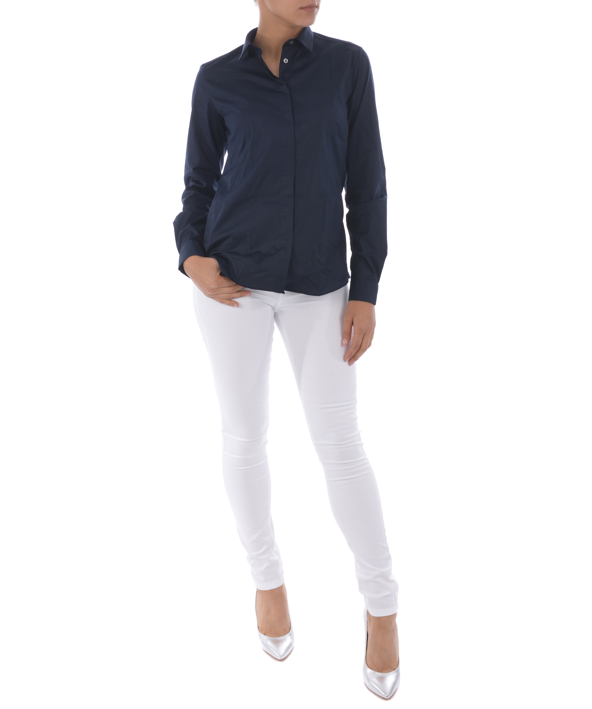 Pantaloni Fay in cotone stretch Bianco. 5 tasche Chiusura con zip e bottone. Gamba stretta. Slim fit. Etichetta in cuoio sul retro. Logo in strass sulla tasca posteriore. Misura in foto 26 98% cotone, 2% elastene