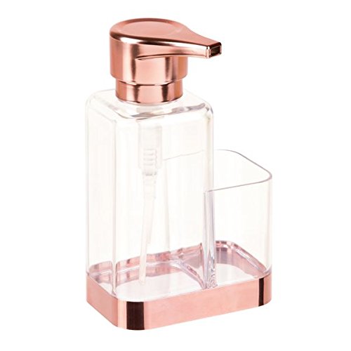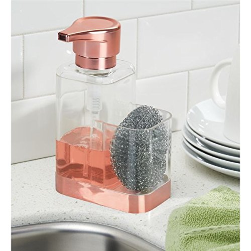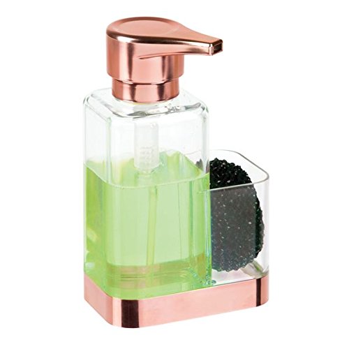 mDesign Foaming Soap Pump with Sponge Caddy for Kitchen Counter Tops, Sink - Clear/Copper