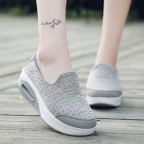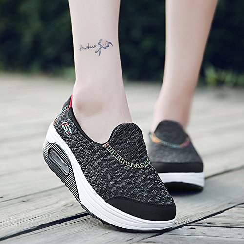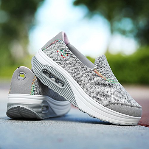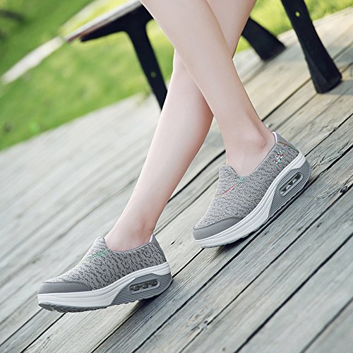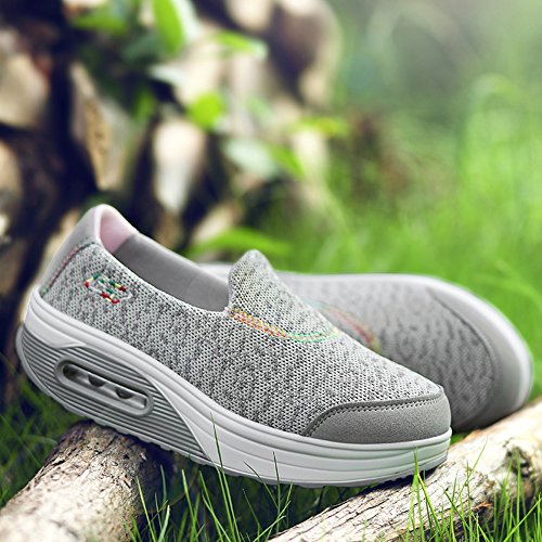 Binding : Apparel Product Description This shape ups shoes have an unstable, strongly curved sole. Walking in them is akin to exercising on a balance or wobble board in the gym or barefoot along a sandy beach. The shape up sneakers can also change your posture and gait and reduce the pressure of spinal. The platform tennis shoes featured high density Flynit with synthetic uppers material,comfy slip on for easy on / off ,low top design,superb hand-stitching,more durable. These fitness/toningwork out shoes with a haning hole at the back,offers a new level of comfort and portability.Breathable and absorb sweat lining,comfortable and relaxed. Super light PU sole with massage function, reduces the weight of the walking shoes without sacrificing comfort,extremely comfortable to wear.You can walk in these platform walking sneakers for hours without any feet pain, your legs feel light and rested and your sole will not hurt. Optimal choice for all-day wear along with leisure indoor and outdoor activities. Size Information US Size 5.5 B (M) US = Heel to Toe 8 7/8 inch(22.5cm) = China Size 35 US Size 6 B(M) US = Heel to Toe 9 inch(23cm) = China Size 36 US Size 6.5 B (M) US = Heel to Toe 9 1/4 inch(23.5cm) = China Size 37 US Size 7 B (M) US = Heel to Toe 9 1/2 inch(24cm) = China Size 38 US Size 7.5 B(M) US = Heel to Toe 9 5/8 inch(24.5cm) = China Size 39 US Size 8 B (M) US = Heel to Toe 9 7/8 inch(25cm) = China Size 40 0