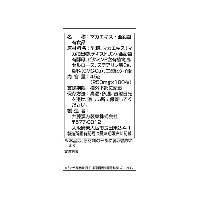 원본상품명: 井藤漢方製 マカジンク 180粒