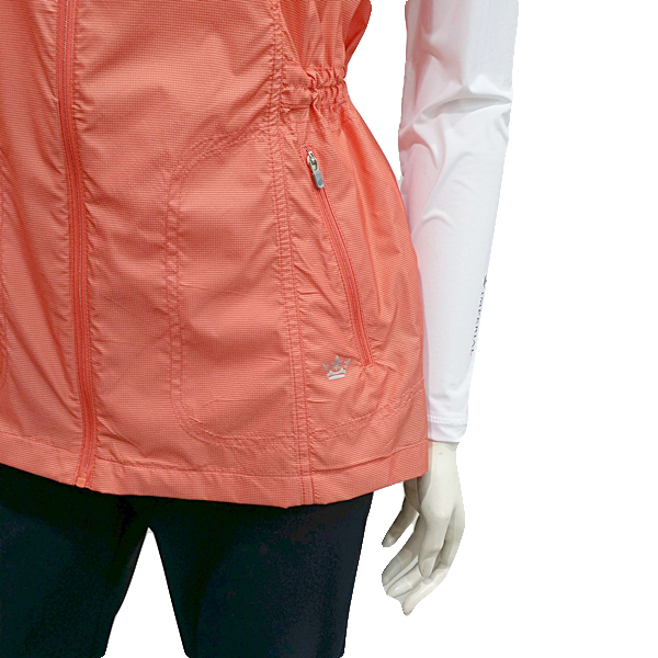 잔잔한 조직이 있는 경량 소재에 메쉬소재를 믹스하여 디자인 포인트를 준 조끼 아이템(95호기준65cm)