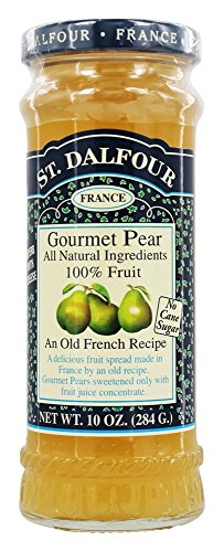 -. Binding : Misc. -. Brand : St. Dalfour -. EAN : 0084380959141 -. Feature : St. Dalfour Fruit Spreads Gourmet Pear Jam in 10oz (284g) jar. An old French Recipe 100% Fruit, all natural ingredient fruit spread. A delicious fruit spread made in France by an old recipe. Gourmet Pear Jam sweetened only with grape juice concentrate. Contain no cane sugar. -. IsAdultProduct : 0 -. Label : St. Dalfour -. Manufacturer : St. Dalfour -. Model : DAL016 -. MPN : 084380959141 -. PackageQuantity : 1 -. PartNumber : 084380959141 -. ProductGroup : Grocery -. ProductTypeName : GROCERY -. Publisher : St. Dalfour -. Studio : St. Dalfour -. Title : St. Dalfour - Fruit Spread 100% Natural Jam Gourmet Pear - 10 oz. -. UPC : 084380959141