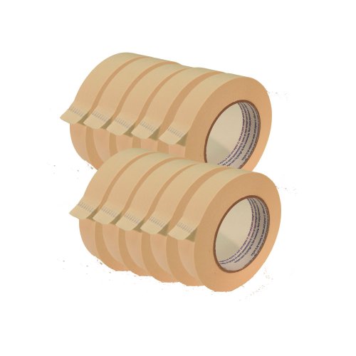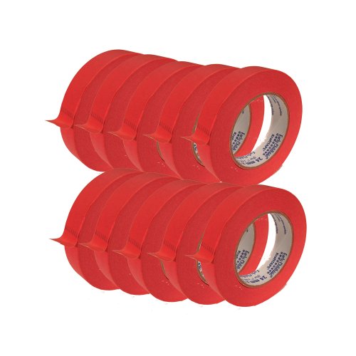Pack of 10 rolls of tape in bright, vivid colors; each roll is 1" by 60 yds with a 3" core