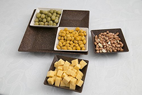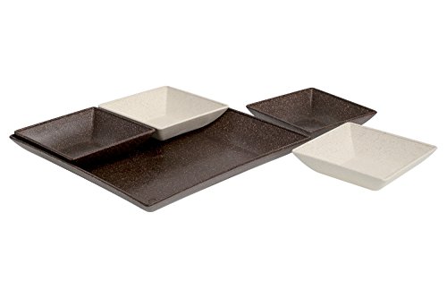 Studio : EVO Sustainable Goods Publisher : EVO Sustainable Goods Binding : Kitchen Product Description These vibrant wpc (wood plastic composite) serving dishes are a fun and way to serve snacks to friends and family. Contains one lightweight large snack tray, perfect for appetizers of all kinds, with 4 small snack dishes that fit perfectly inside, perfect for dipping sauces and small treats. Working in harmony or independently, this set is a must have for any host. As always, these BPA free products are dishwasher and microwave safe. 0