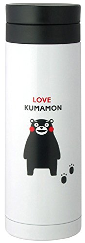 Double-wall vacuum insulation keeps liquids hot or cold for a long time. The stainless bottle with a Kumamon print, a popular mascot character in Japan.