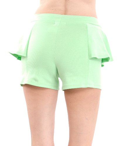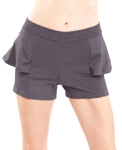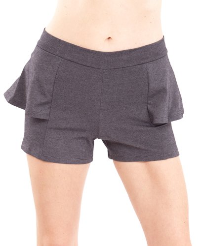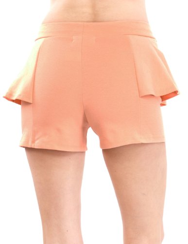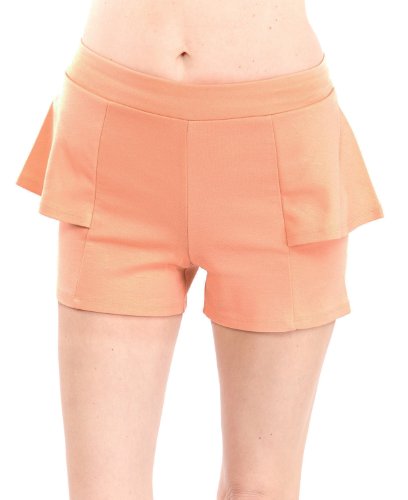 Product Description Black Ladies Side Peplum Shorts. This shorts features a high banded waistline, peplum sides that give off cuteness, and a stretchy fit. Colors available in Black, Charcoal, Ivory, Mint, Peach, Pink, Royal Blue, and Tan, Approximately 13" in length, 70% Cotton, 27% Polyester, 3% Spandex. 0
