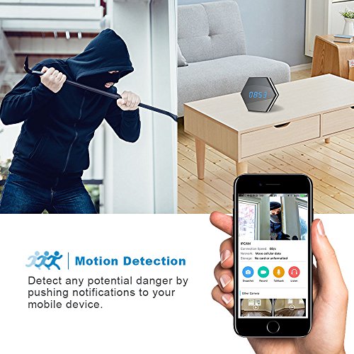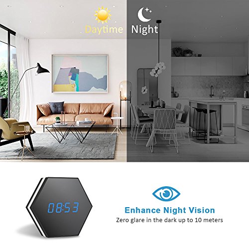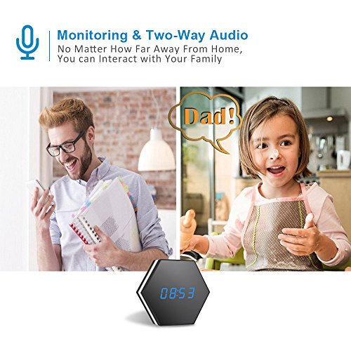 ✪Two-Way Audio:This camera clock built in microphone and speakers so you can talk and listen to your family or friend via home wireless cameras. Tell your dog to get off the couch or tell intruders that the police are on the way. 360-degree omni-directional voice collecting, professional speech processing chip reduce background noise and improve audio output. Versatile installation allows you place the camera where it suits you best, wall mount or desk.