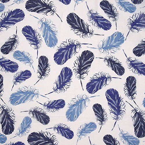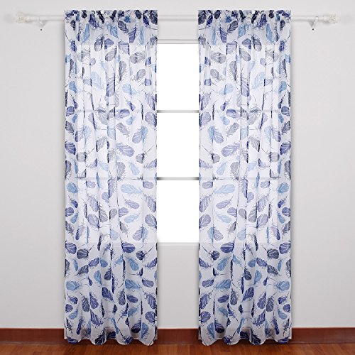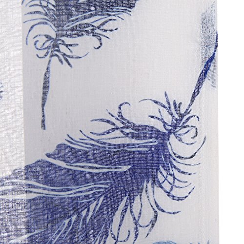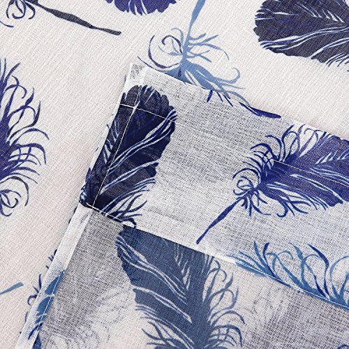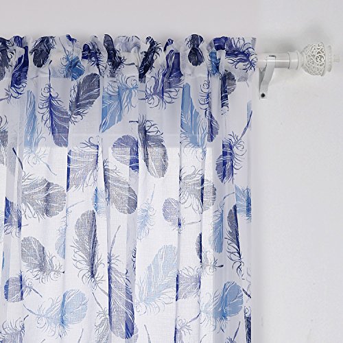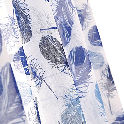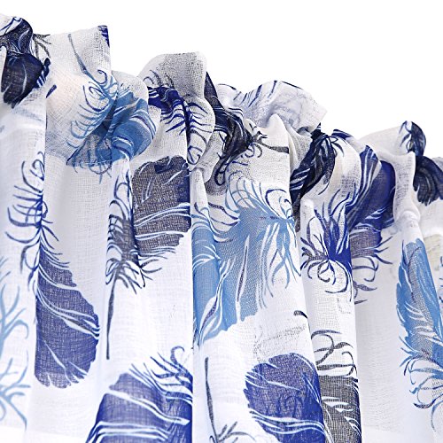 Deconovo Fashionable Feather Print Pattern Faux Linen Rod Pocket Rod Pocket Sheer Window Curtains for Kitchen 42 x 84 Inch Blue 1 Pair