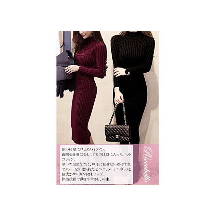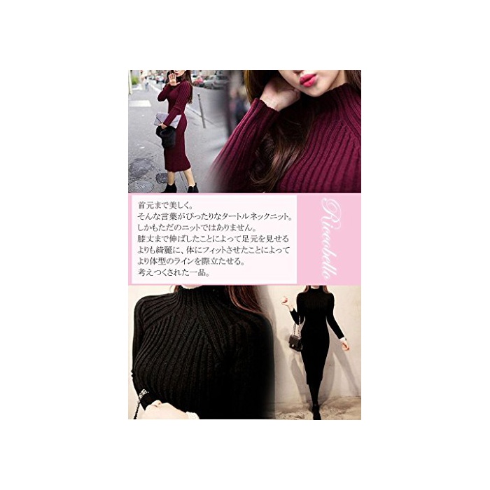 원본상품명: (リコベロ)Riccobello レディ?ス タ?トルネック 長袖 ニット 膝丈 ワンピ?ス おしゃれ かわいい あったか 秋冬 ひざ下 タイト セミ ロング ニットワンピ ? (ブラック)