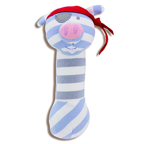 Pirate Pig Squeaky Toy is sized at 2.5 x 6.5" and suitable for babies' age 0 and up