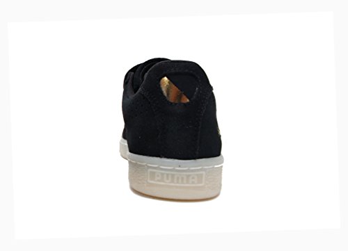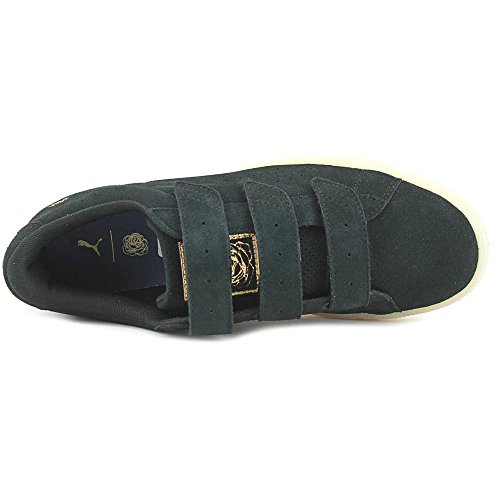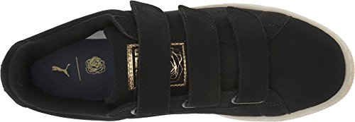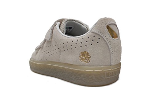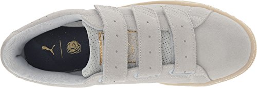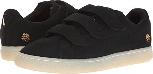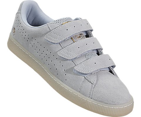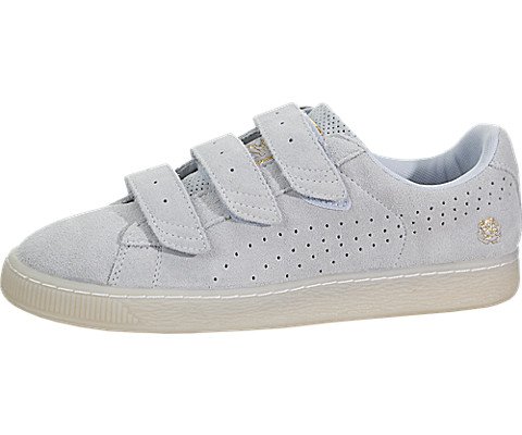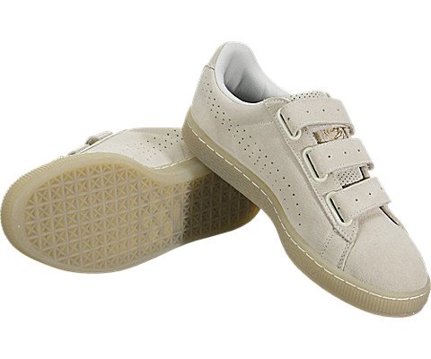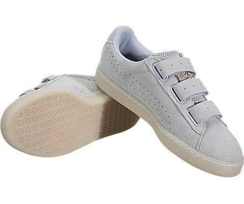 Binding : Apparel Product Description This style is part of the PUMA x CAREAUX collection. Graphic designer and Netherlands native, Caroll Lynn, is the name behind CAREAUX and brings a romantic and feminine-edge to the collection. If you fancy a fresh and femme style, look no further than the fierce Puma X Careaux Basket Strap. Rich suede uppers with a round toe in a low-profile silhouette. Lightly cushioned tongue and collar. Perforated tongue with a gold foil PUMA and Careaux logo. Perforated PUMA Formstrip at medial and lateral sides Gold foil Careaux logo lateral heel. Features three adjustable straps with hook-and-loop closures. Soft and breathable textile linings. Lightly padded footbed with gold foil PUMA and Careaux logo call out. Iced gum rubber midsole and outsole. Imported. Measurements: Weight: 14 oz Product measurements were taken using size 10, width D - Medium. Please note that measurements may vary by size. 0