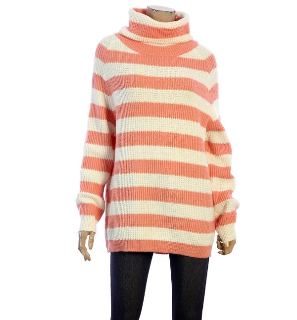 mesense, 스트라이프 패턴으로 활발한 분위기를 연출하는 폴라넥 티셔츠입니다