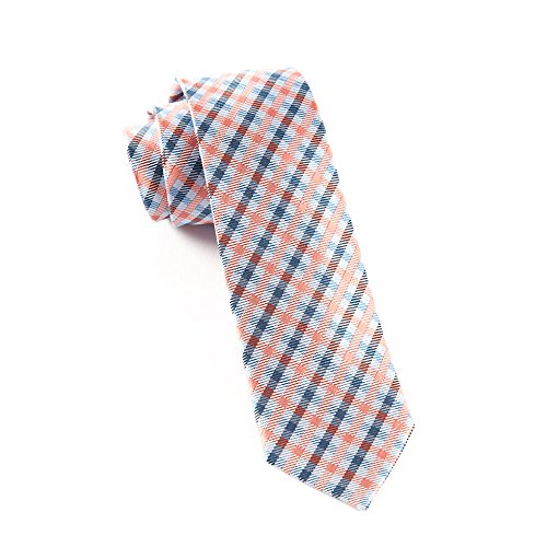 100% Woven Silk Coral and Light Blue Power Checked 3" Tie