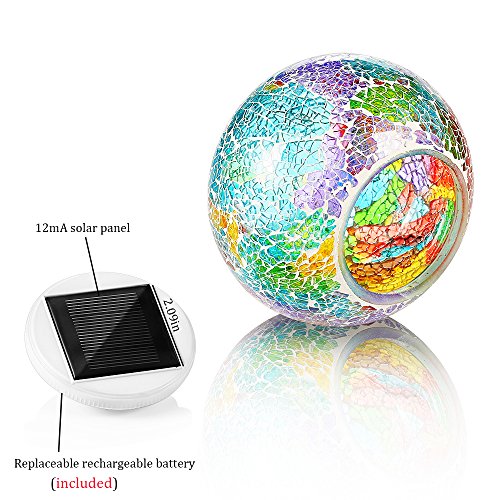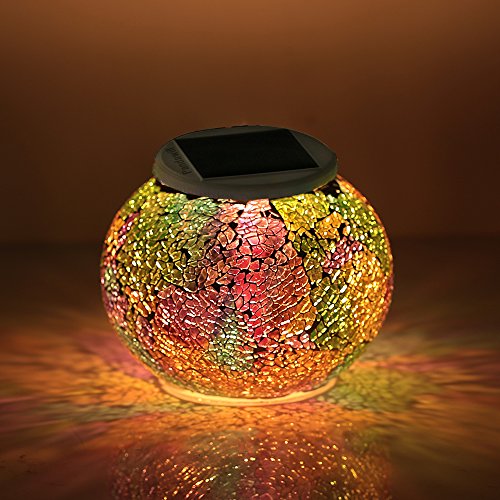 Solar Table light, GoerTek Rechargeable Outdoor/Indoor Waterproof Solar Night Lights, Color Changing Mosaic Glass LED Decoration Lights