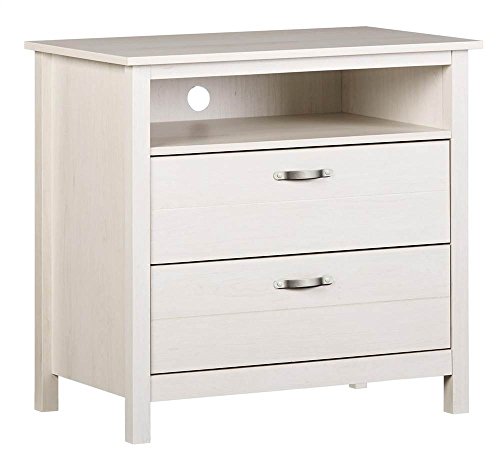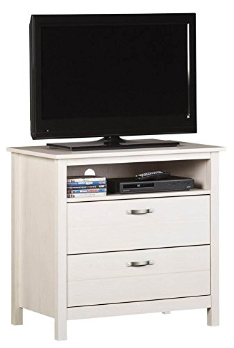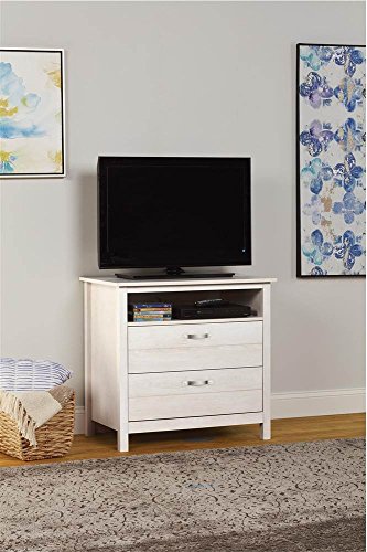 Studio : Ameriwood Publisher : Ameriwood Product Description Two drawers. Made from engineered wood, MDF and particleboard. 31.3 in. W x 19.7 in. D x 29.6 in. H (66.1 lbs.). The River Layne Two Drawers Media Dresser is a great addition to any childs room that has a TV. Add the River Layne nightstand to the room for a complete look. 0